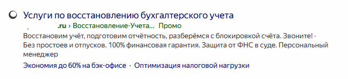 Если же в объявлениях не указано даже то, что прямым текстом указано на сайте и является для вас конкурентным преимуществом. Не хватает каких-то элементов (быстрые ссылки с описанием, уточнения и тд.) это существенная недоработка со стороны специалиста по контекстной рекламе. Ваше объявление будет проигрывать на фоне объявлений конкурентов. Кроме того, объявления без этих полей не проходят в некоторые трафареты Яндекса и могут не отображаться в поиске на выгодных позициях.
