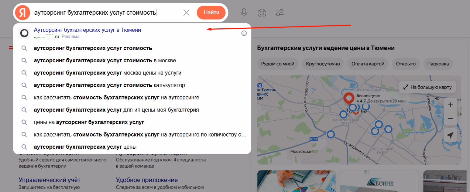 Благодаря грамотно настроенным корректировкам вы можете получит показы внутри поисковой строки.