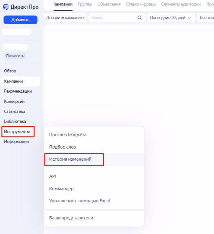 Подрядчик говорит, что «работает над проектом», но результатов нет? Проверьте это. В Яндекс.Директе есть беспощадная вкладка — «История изменений».